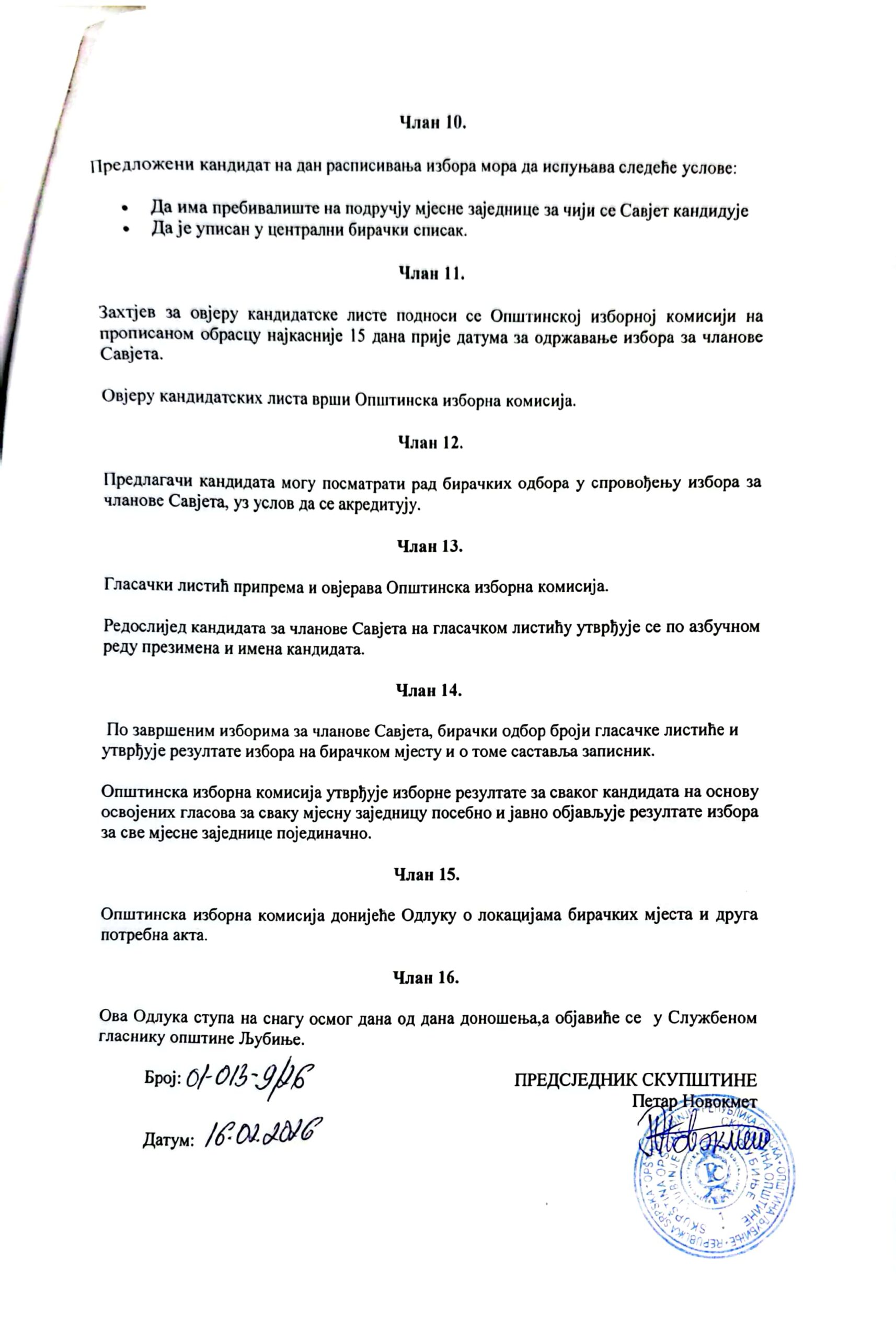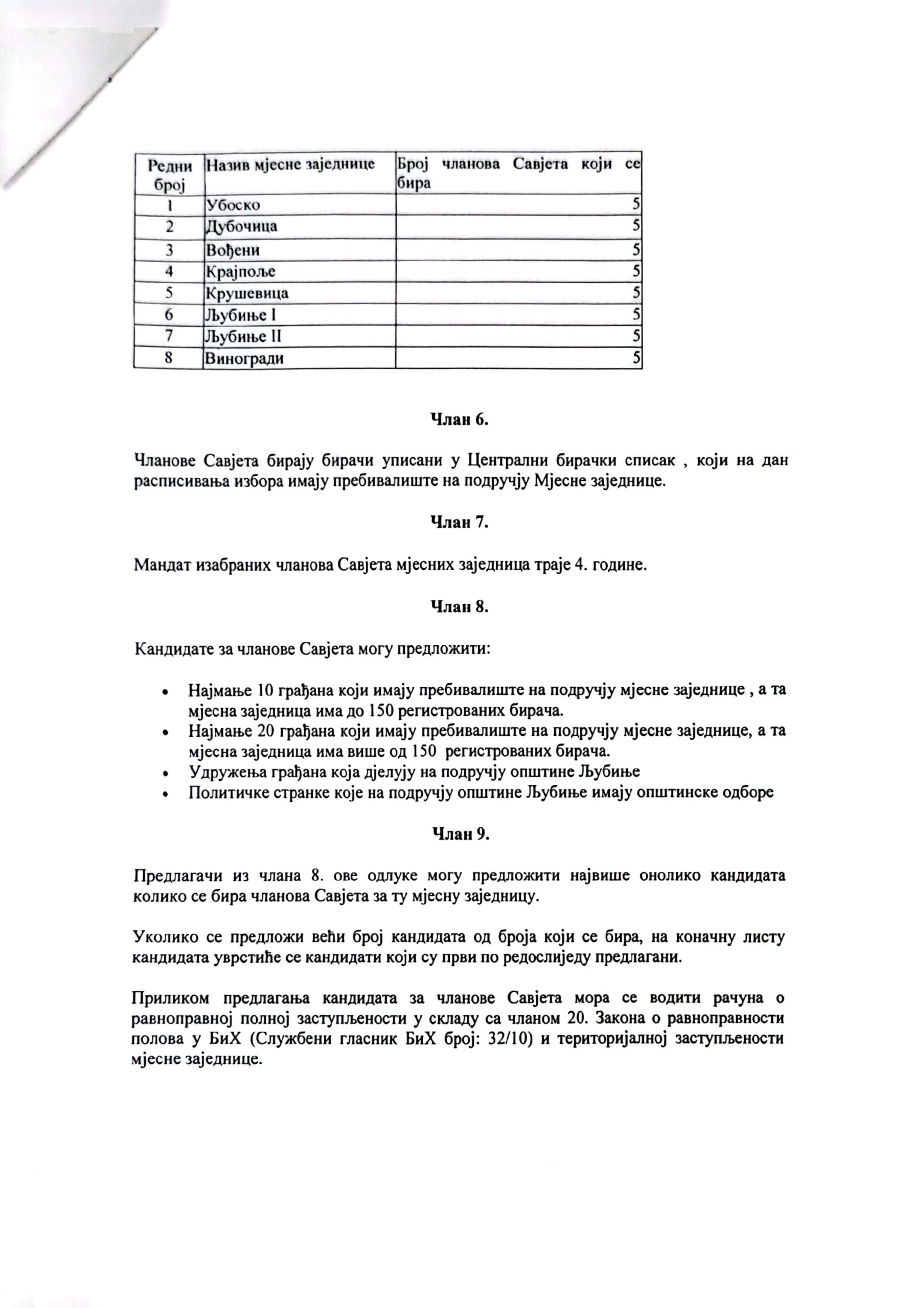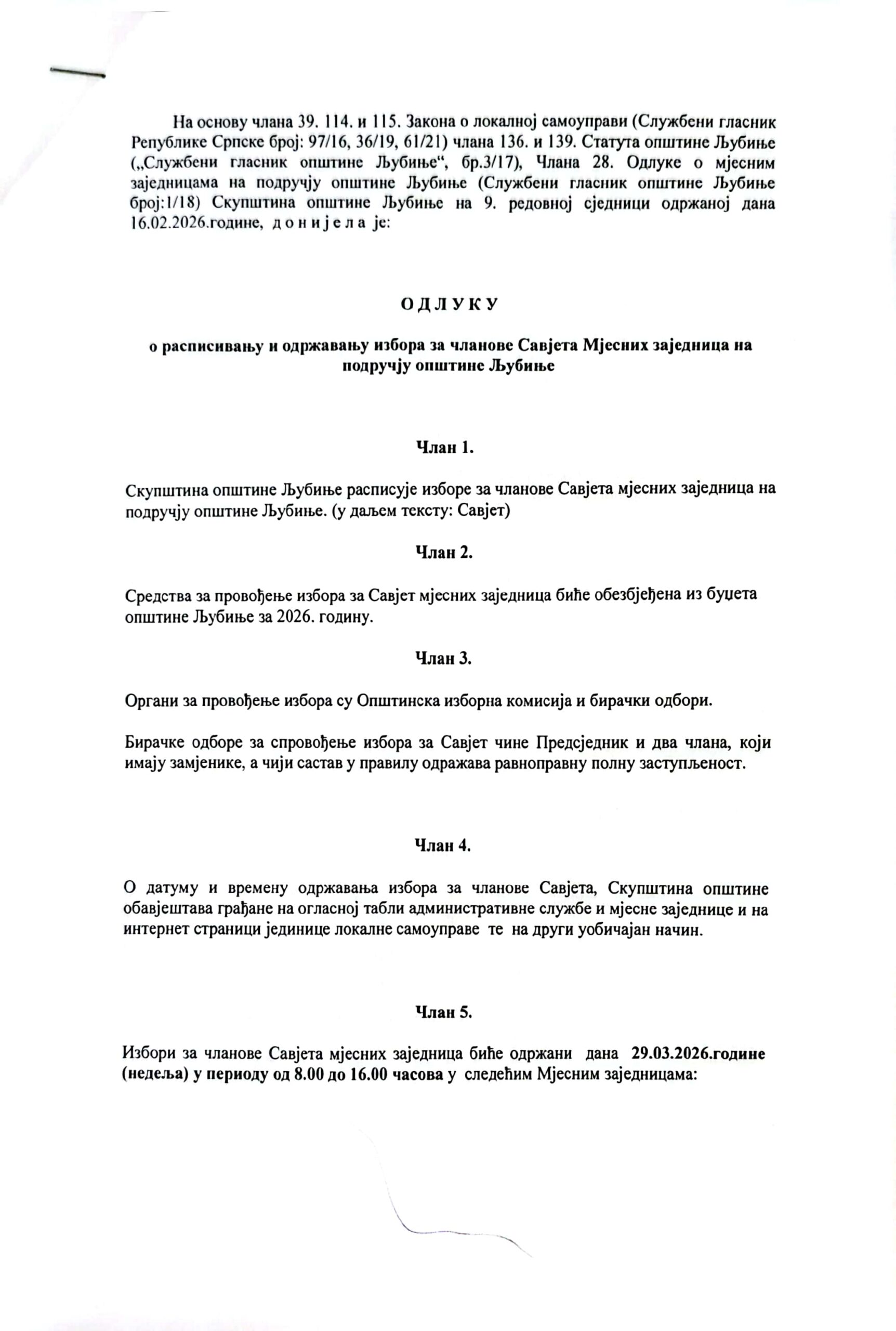 ОДЛУКА О РАСПИСИВАЊУ И ОДРЖАВАЊУ ИЗБОРА ЗА ЧЛАНОВЕ САВЈЕТА МЈЕСНИХ ЗАЈЕДНИЦА